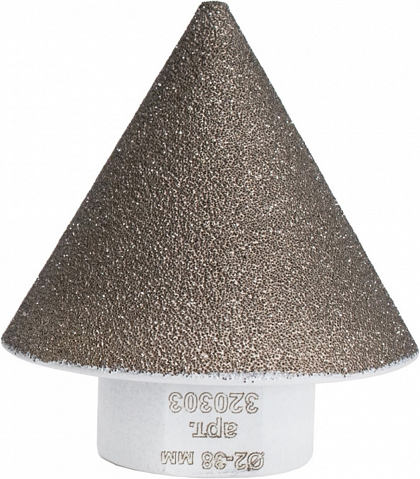 Алмазная конусная фреза Diam Extra Line V-Tech M14 2-38 мм (Диам Экстра Лайн В-Теч М14 2-38 мм) предназначена для расширения отверстий, а также возможности делать фаску для крепления в "потай" в керамике, граните, керамограните, мраморе, ониксе, травертине при помощи ушм (болгарок), перфораторов, дрелей без водяного охлаждения.