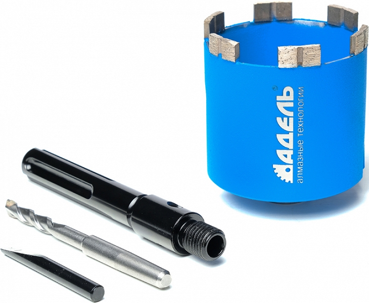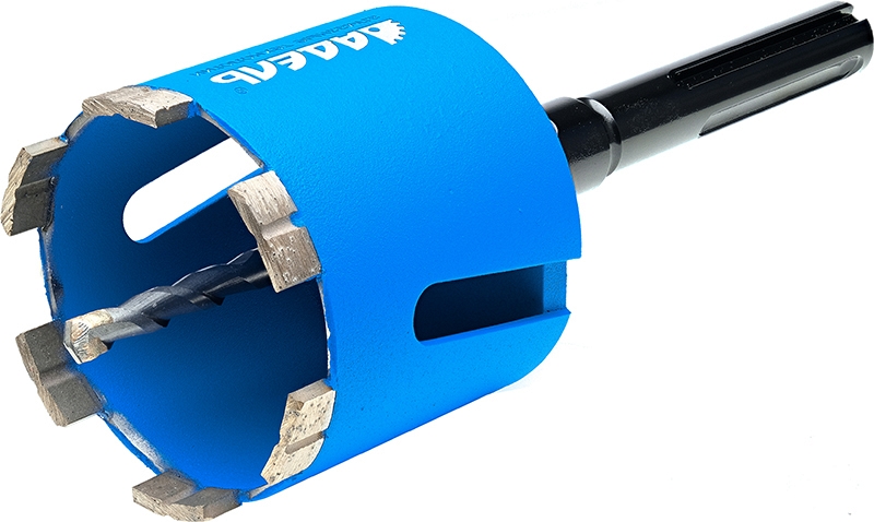 Алмазная коронка для подрозетников по железобетону Адель Super Fast SF-D70 SDS-Max 72/65 мм (Adel Супер Фаст СФ-Д70 СДС-Макс 72/65 мм) С адаптером М16 – SDS-Max, центровочным твердосплавным сверлом и клином предназначена для скоростного сверления железобетона (армированного бетона), бетонных блоков, газобетона, кирпича и других строительных материалов с использованием ручного электроинструмента без охлаждения водой.