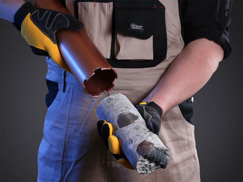 Технология Diamond Hit – новейшая технология алмазного сверления в железобетоне, ФБС, кирпиче без подачи воды («в сухую») и дополнительного вскрытия алмазных сегментов в процессе работ. Ударные дрели или специальные двигатели алмазного бурения и уникальные алмазные коронки для сухого сверления позволяют профессионально бурить железобетон с высоким армированием и абразивные материалы. - Сухое сверление армированного бетона: