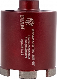 Цена и технические характеристики алмазной коронки с пылеудалением для сухого сверления с микроударом подрозетников Diam Extra Line Hit 72 мм: