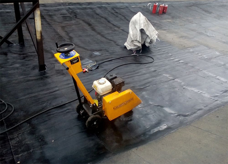 – Легкая и плавная регулировка глубины реза до 100 мм - Защитный кожух для защиты двигателя от падающего на него шлама – специальное ограждение двигателя: при резке мягкой кровли часто случается, что битумная крошка и пыль попадают на корпус двигателя и, расплавляясь, образуют пленку, которая резко уменьшает теплообмен и приводит к перегреву двигателя или становится причиной поломки его частей и выхода двигателя из строя