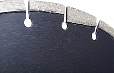 - Лазерная сварка сегментов с корпусом: алмазные сегменты закреплены на диске методом лазерной сварки, что позволяет использовать диск, как с подачей воды так и в сухую: мокрый и сухой рез (возможность использования без подачи воды: не требует принудительного охлаждения во время работы)