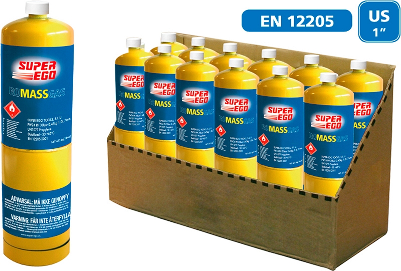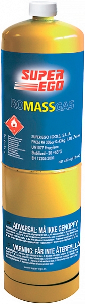 Газовый баллончик для горелки Super-Ego Romassgas (Супер-Эго Ромассгаз) – стабилизированная смесь газообразного метилацетилена с пропадиеном для эффективной пайки мягким и твердым припоем труб из меди и алюминия.