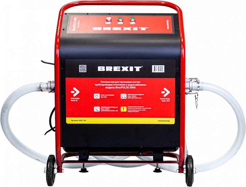 Компрессор для промывки системы отопления и водоснабжения Brexit BrexPulse 3000 (Брекзит БрекзПульс 3000) – эффективный промывочный компрессор для промывки пульсирующей водно-воздушной смесью загрязненных систем отопления, водоснабжения и водонагревателей; трубопроводов многоквартирных домов; питьевых и отопительных водопроводов; систем обогрева пола; радиаторов; дезинфекции систем питьевого водоснабжения (требуется применение редуктора и инжектора – дополнительные опции); защиты от налета и коррозии.