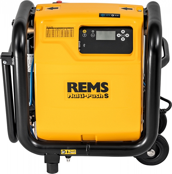 Компрессор для промывки системы отопления Rems Multi-Push S (Ремс Мульти-Пуш С) – сверхмощное электронное устройство для промывки в компактном исполнении с безмасляным компрессором для промывки водой или водовоздушной смесью, дезинфекции, очистки, консервации трубопроводных систем и эксплуатации пневматических инструментов.