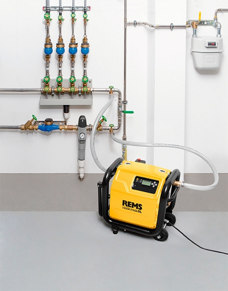 - Rems Мульти-Пуш SL – всего один прибор с более чем 10 автоматическими программами для промывки и испытания под давлением. Постоянный контроль технологического процесса. Протоколирование. USB-разъем.