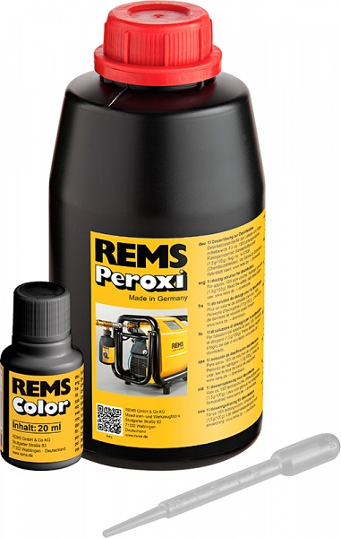 | 115605 R | Peroxi Color Бутылка 1 л дозировочного раствора Peroxi для дезинфекции трубопровода объемом примерно 100 л, бутылочка 20 мл красного красителя Color для закрашивания дозировочного раствора с целью контроля заполнения и износа, пипетка для проверки действия дозировочного раствора. |