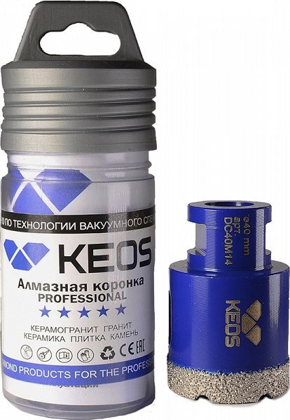 Цена и технические характеристики коронки алмазной по керамограниту Keos Professional Vacuum Brazed M14 40 мм: