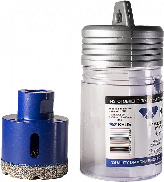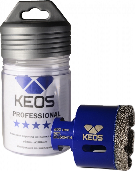 Цена и технические характеристики коронки алмазной по керамограниту Keos Professional Vacuum Brazed M14 50 мм:
