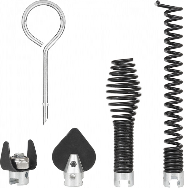 - В данную комплектацию дополнительно входит секционная прочистная спираль Ø 16 мм × 3 м и комплект из 4-х сменных прочистных насадок и разъединительного ключа, что значительно расширяет возможности применения