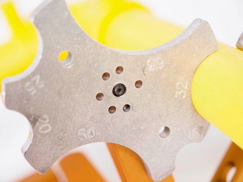 - Диаметр зажимаемой трубы определяется положением 4-х зажимов, каждый из которых поворачивается вокруг оси и фиксируется в одном из 5-ти положений