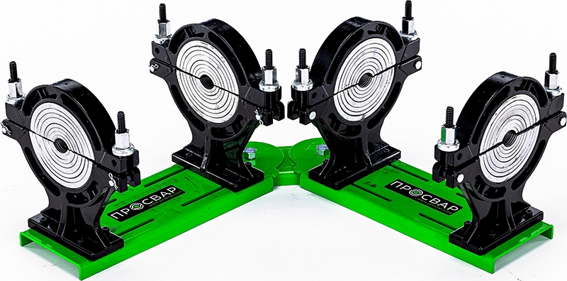 - 4-х зажимный: 4 специальных регулируемых зажима с вкладышами фиксируют трубы в 4-х точках и не допускают их смещения из стороны в сторону, что обеспечивает высокую точность позиционирования и прочность сварного шва