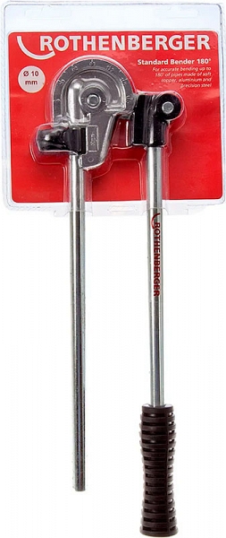 Ручной рычажный трубогиб Rothenberger 14 мм (Ротенбергер 14 мм) предназначен для точной холодной гибки двумя руками алюминиевых, мягких медных и тонкостенных стальных труб Ø 14 мм на угол до 180° в мастерских и на стройплощадках при монтаже разнообразных систем пневматики и гидравлики, вентиляции и кондиционирования, а также в машиностроении и холодильной технике.
