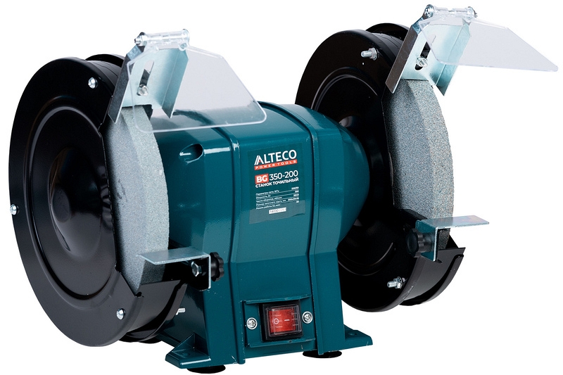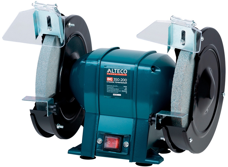 Электрический точильный станок настольный Alteco BG 350-200 (АЛТЕКО БГ 350-200) используется для заточки сверл, ножей, стамесок, долот, гвоздей, скоб и другого режущего и слесарного инструмента. В качестве рабочего инструмента в точило используются точильный камень, абразивные круги, шлифовальные круги и полировальные.