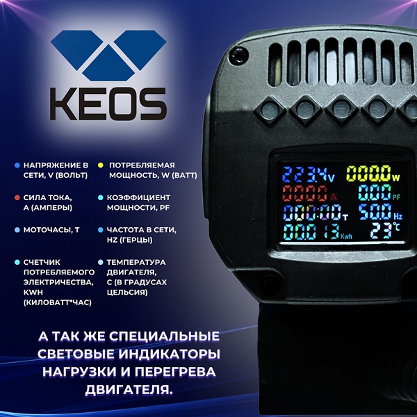 - Дисплей и LED индикация оповещает оператора о состоянии двигателя, допустимой перегрузке и температуре двигателя